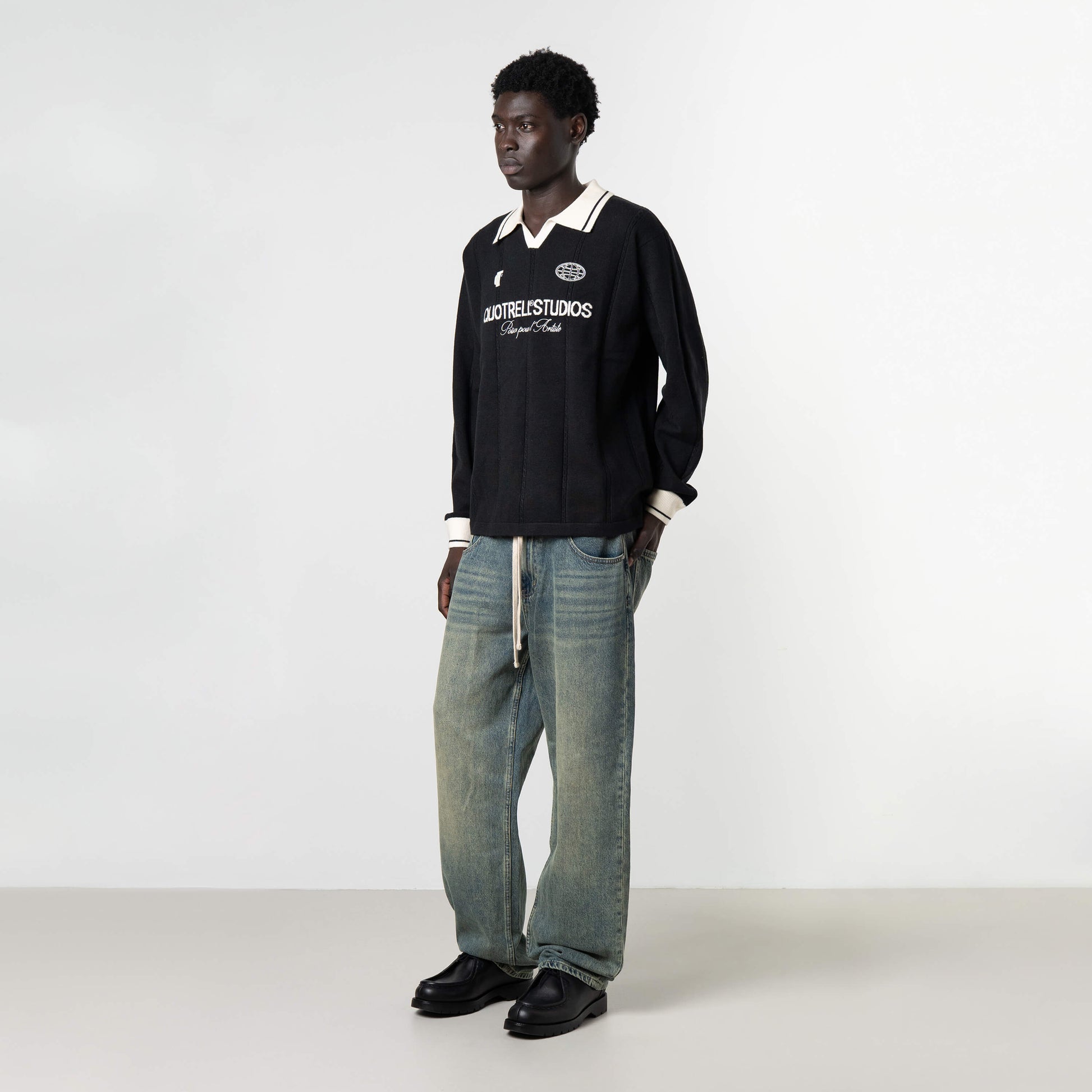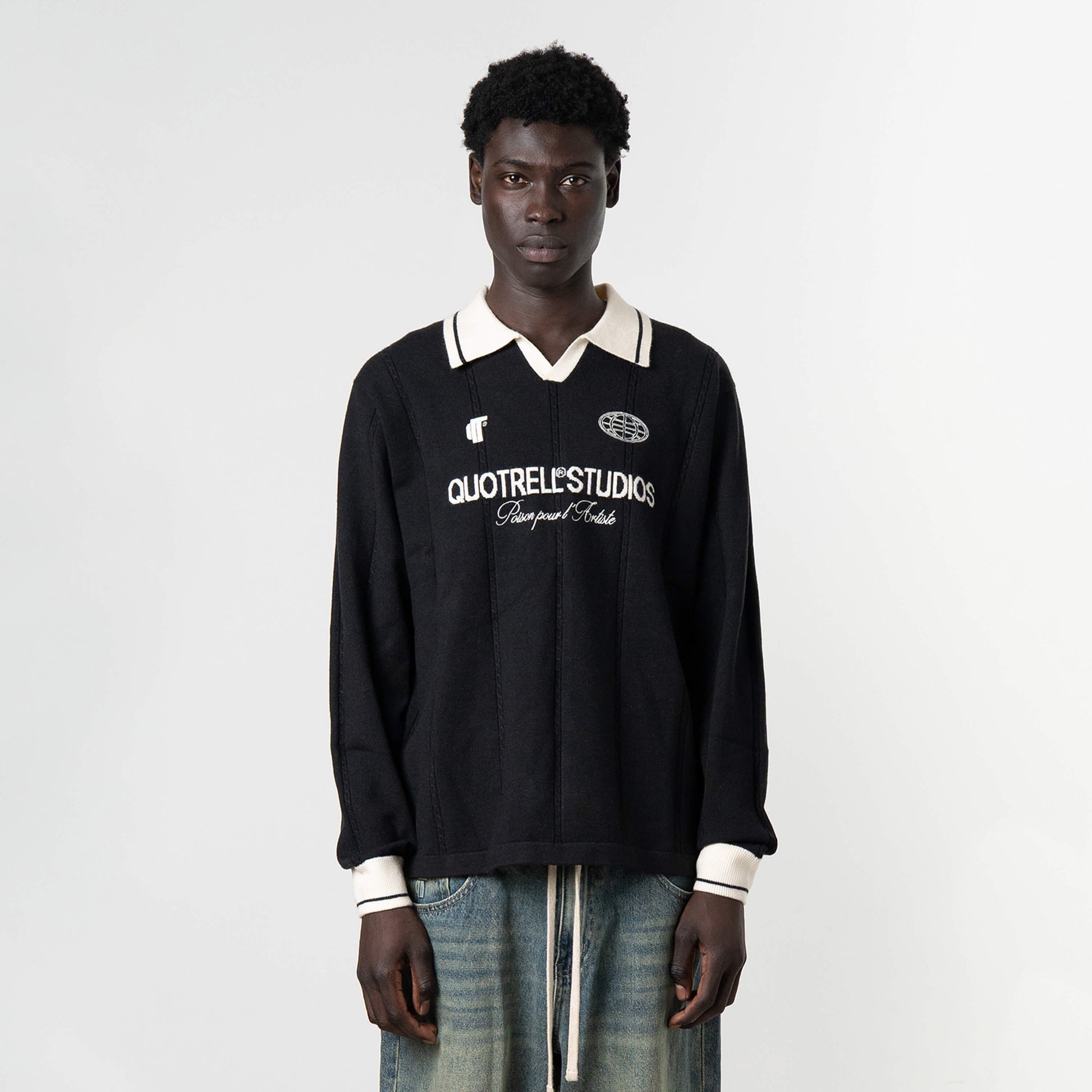 With its bold Quotrell Studios embroidery, striped collar, and retro-inspired knit design, this piece redefines what a jersey can be. It merges vintage sports energy with modern streetwear rebellion. Crafted for those who don’t just follow the game, but rewrite the rules.