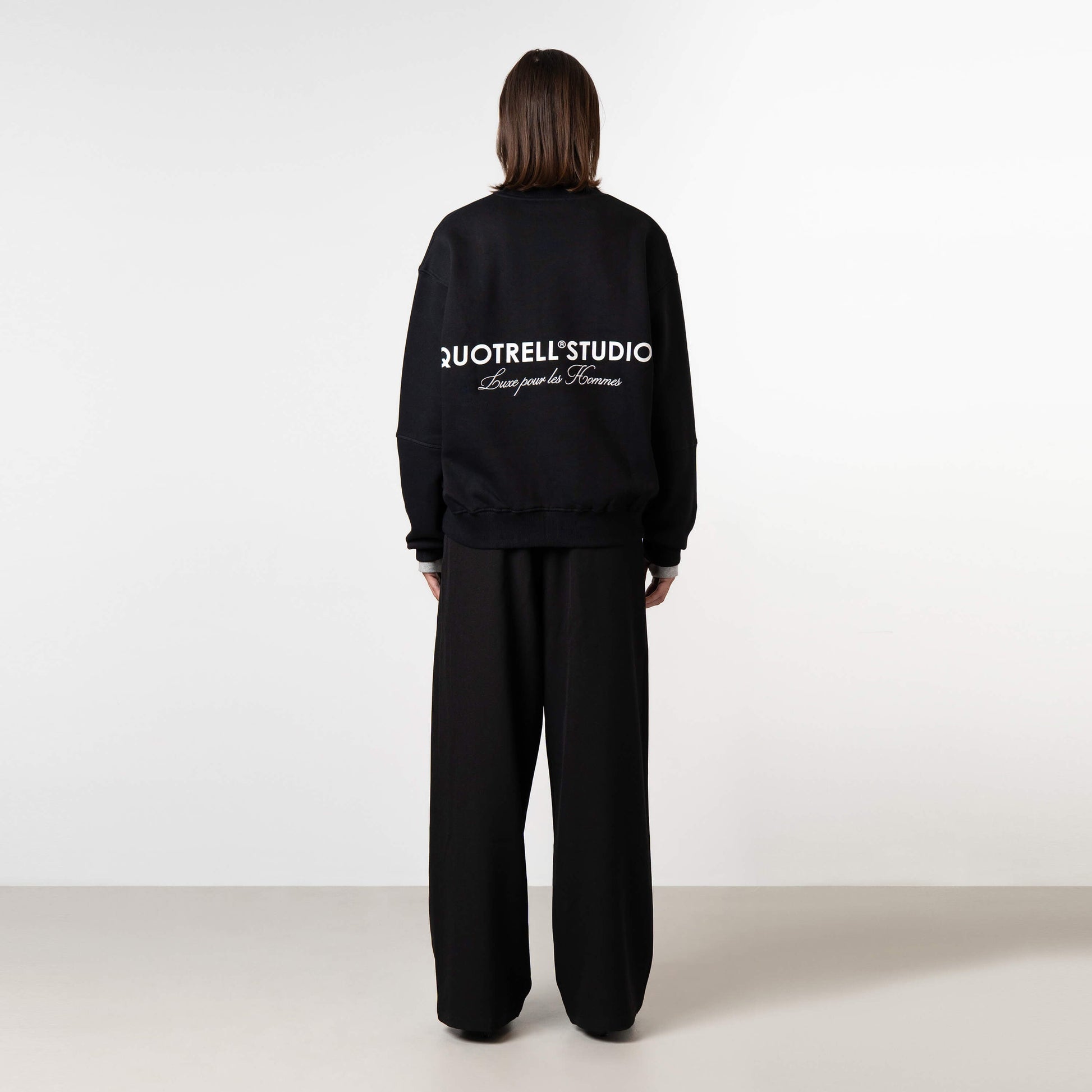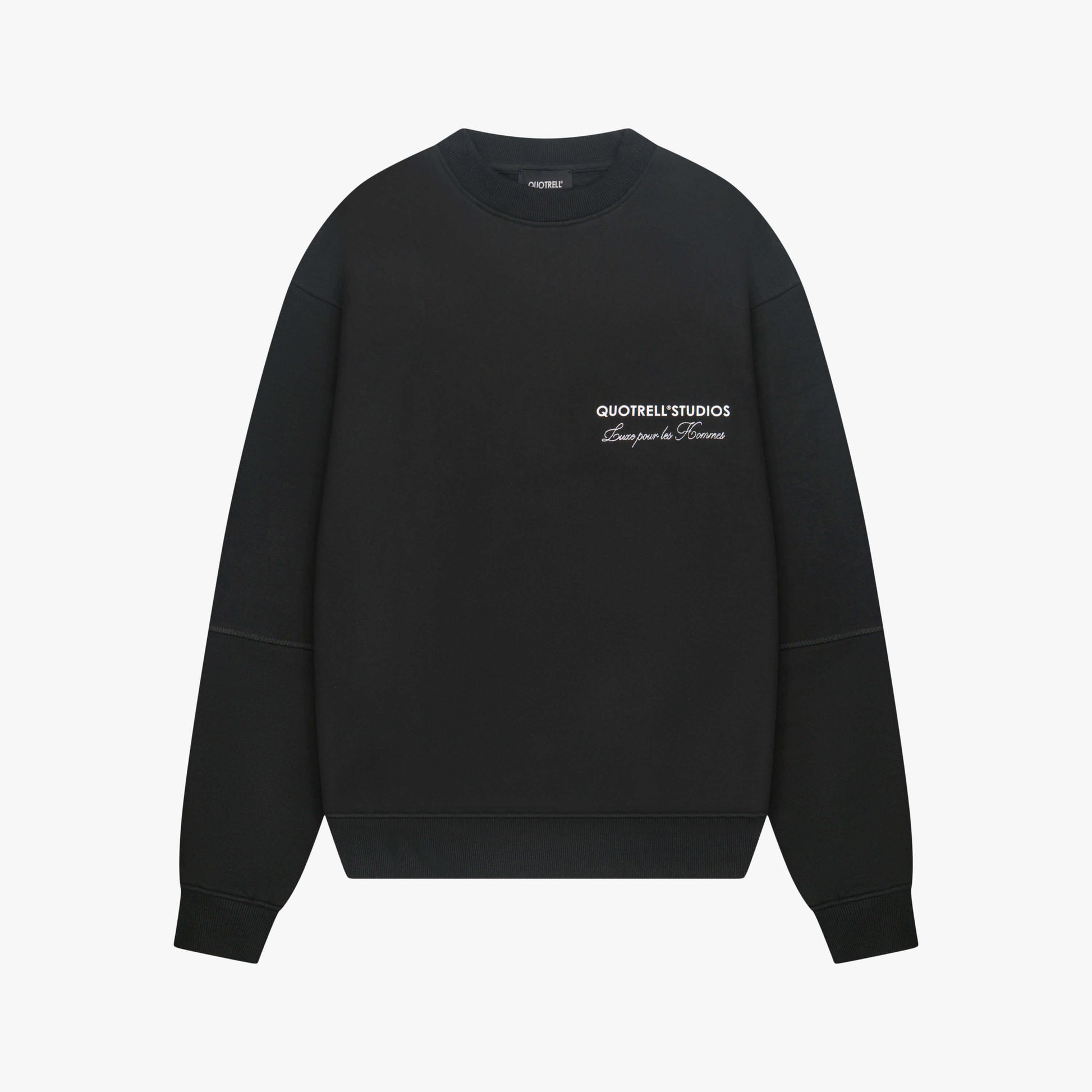The Studios Crewneck is made of high-quality organic cotton making it incredibly comfortable to wear. The crewneck features a large artwork on the back and a small matching artwork on the chest where the text ''Luxe pour les hommes” is embroidered. The neck features a subtle detail with our signature Quotrell branding. Next to the neck label you will find a unique code inspired by the military.